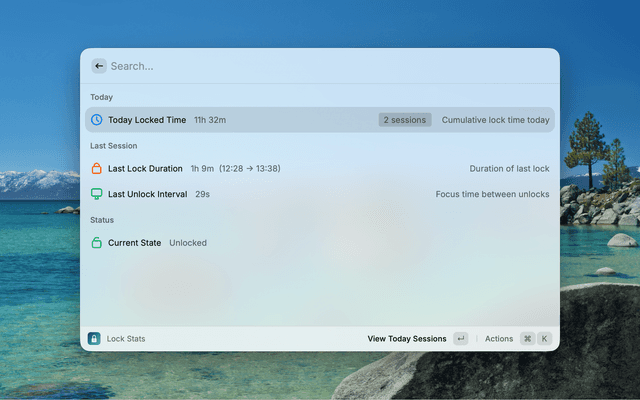 - Today Locked Time — Cumulative lock duration for today, press Enter to view session breakdown