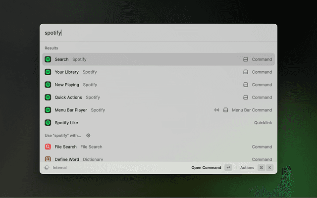 Use this to get a playlist generated by Raycast AI based on a prompt. You can then add this playlist to Spotify or queue all the songs directly.