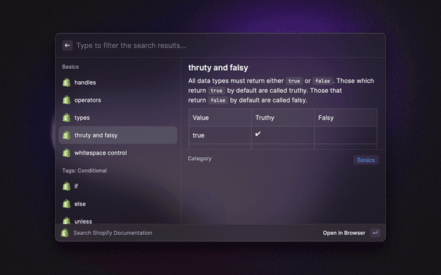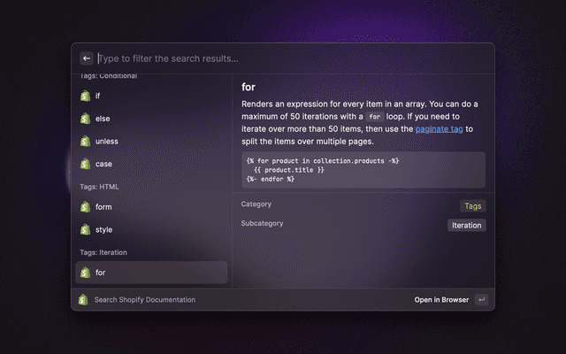 Search Shopify Liquid Documentation Directly From Raycast