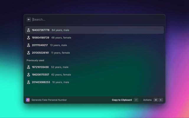 Generates 4 fake swedish personal numbers