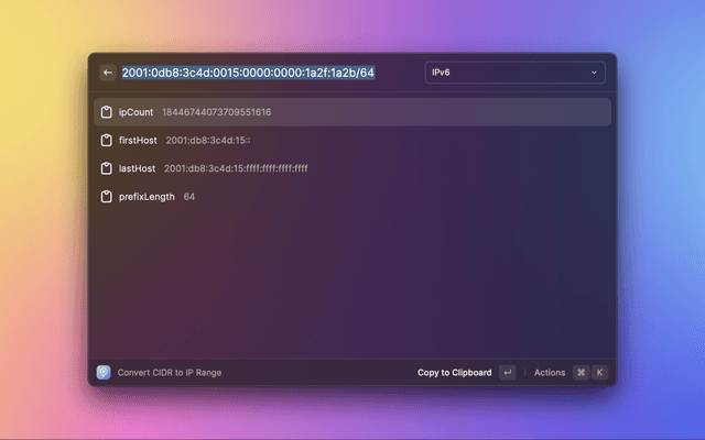Convert CIDR to IPv6 Range