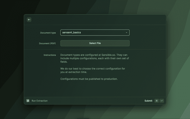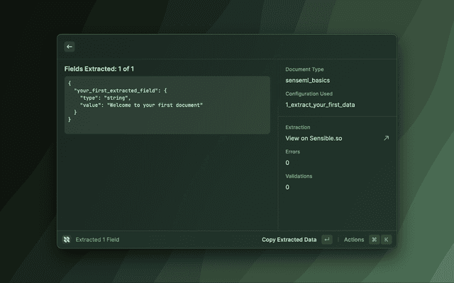 If it's your first time using Sensible, we recommend you checkout https://docs.sensible.so/docs/ui to get a quick overview of how to get started.
