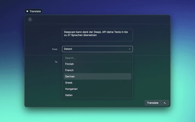 Translate words, or entire sentences, into 30 different languages using DeepL.