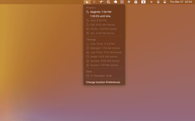 This extension helps you to view adhan time for any location in the world with different calculation methods (calenders) using Aladhan.com API.
