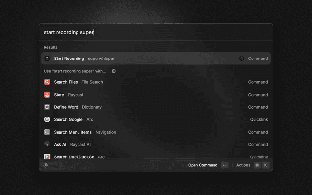 Requires the installation of superwhisper. Go to https://superwhisper.com to download & use for free.