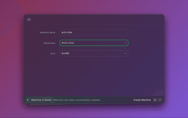 orbctl (which this extension uses) prompts the user for a password during machine creation. We can't 'answer' the prompt via the raycast API. Use orbctl or orb cli if you need to set a username with password when creating a machine. Example: orbctl create -u <user> -p <distro> <machine-name>.