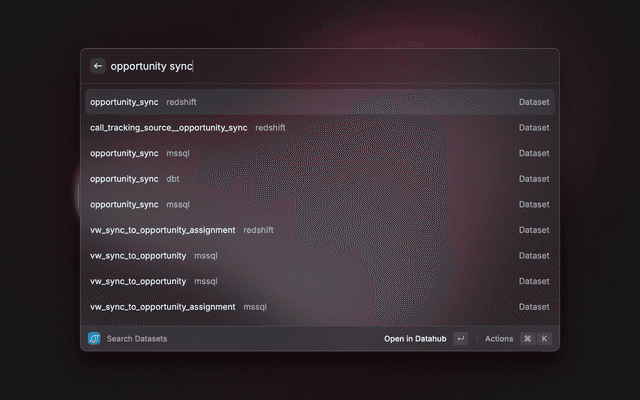Search and explore datasets in your DataHub data catalog directly from Raycast.