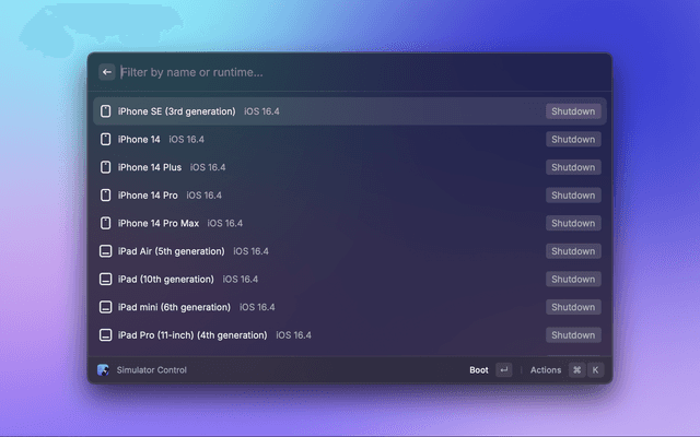 Extension to control your Apple platform simulators.