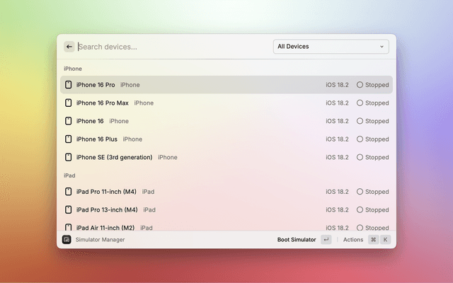Easily manage iOS simulators and Android emulators directly from Raycast.