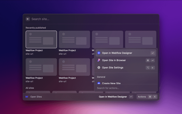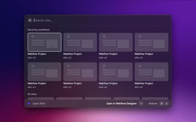 This extension gives you shortcuts over common Webflow project tasks to help save you time! Bring Webflow to every corner of your OS.