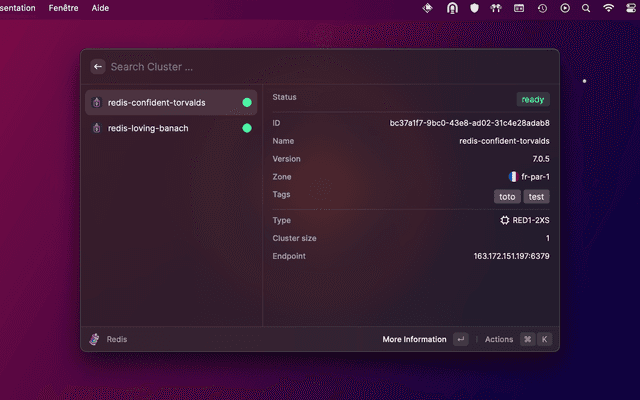 Raycast extension to search containers, database, instances or Redis clusters, to perform actions, and more to come.