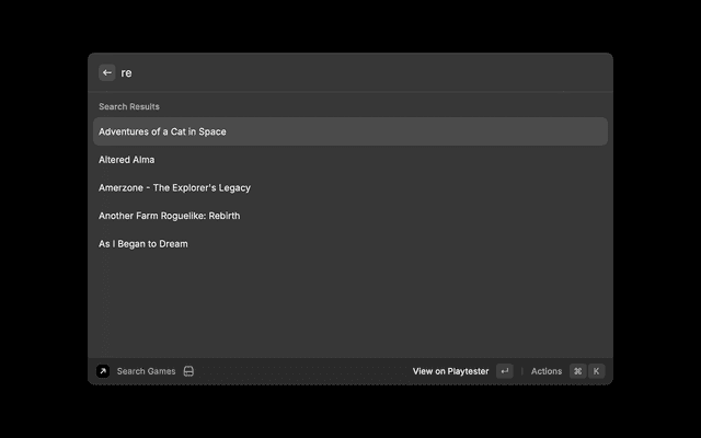 This Raycast extension provides quick and convenient access to Playtester’s database of indie games right from your desktop.