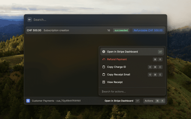 Manage multiple Stripe accounts with different environments seamlessly from Raycast!