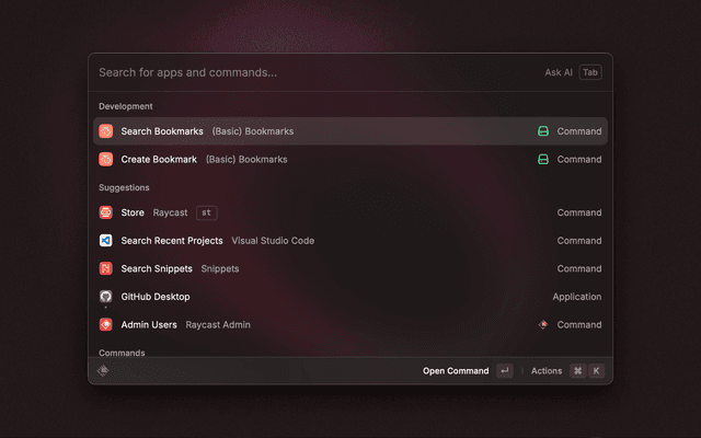 Search your bookmarks by group. Open in the browser, copy the value to the clipboard or delete your bookmark.