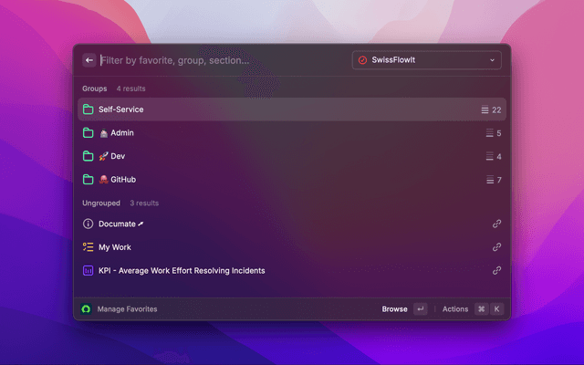 - Manage Favorites: View and manage your favorite items and groups in ServiceNow.
