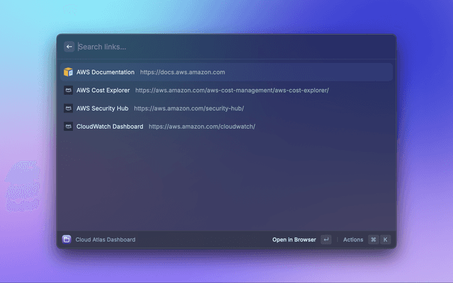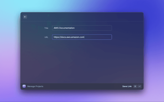 Cmd + N)Cmd + N)Cmd + N: Create new project/linkCmd + E: Edit project/linkCmd + C: Copy link URLCmd + Shift + O: Open all linksCmd + Shift + Backspace: Delete itemIf you encounter any issues or have suggestions, please file them in the Raycast Extensions Repository.