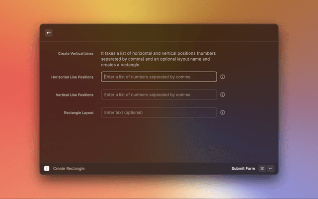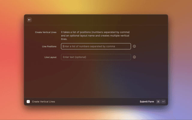 NUMBER,NUMBER,NUMBER]&layout=STRING?It takes a list of horizontal positions (number) and vertical positions (number) and an optional layout name and creates a multiple vertical lines.