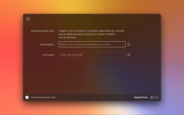It takes a list of positions (number) and an optional layout name and creates a multiple horizontal lines.
