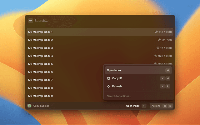 This extension currently only supports copying text from the subject line of emails in your mailtrap inboxes with plans to expand the available commands over time.