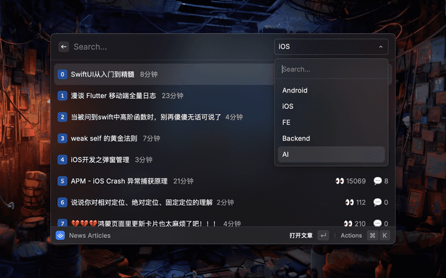 Display recommended articles under each category of Juejin, and support the selection and switching of different types of articles