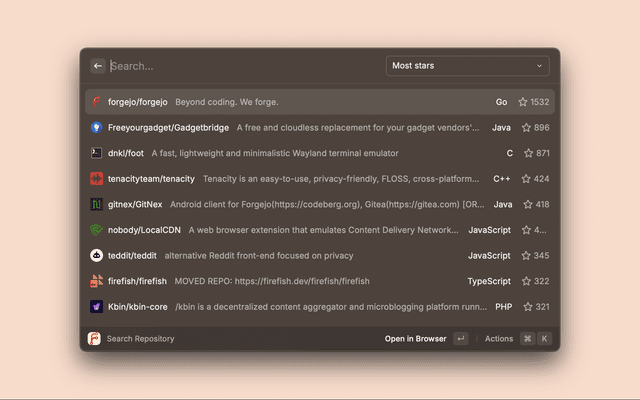 Using on websites built through Forgejo. Work with search repositories and get notifications