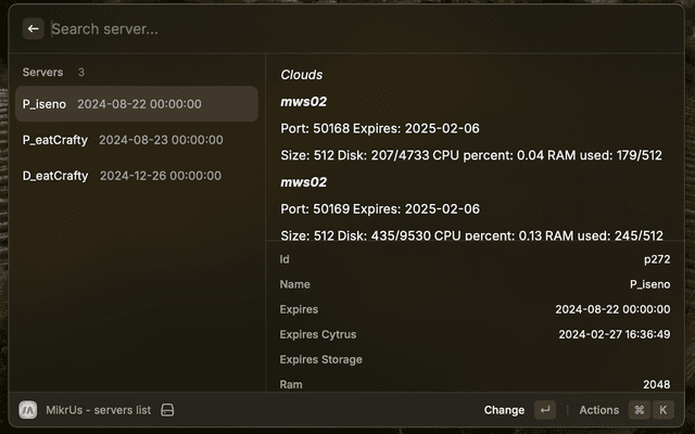 All preferences properties list that can be customize through Raycast Settings > Extensions > Mikr.Us
