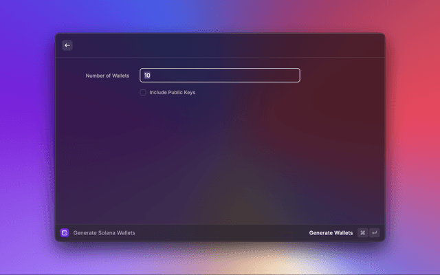 Introducing the Solana Wallet Generator, a powerful Raycast extension designed for developers and cryptocurrency enthusiasts seeking to efficiently create multiple Solana wallets. This tool streamlines the wallet generation process, allowing users to produce thousands of wallets swiftly and securely.