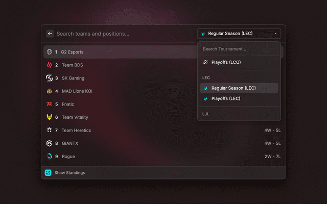 Search League of Legends esports schedules