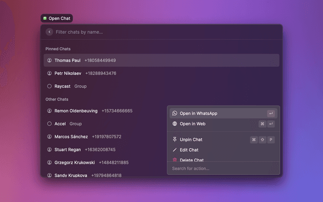 quickly access already existing chats. Until WhatsApp provides a public API, the Add Chat and Add Existing Group