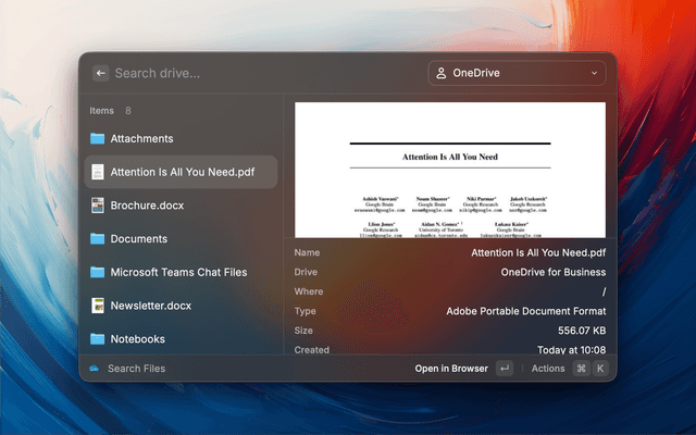 - Search across OneDrive and SharePoint document libraries