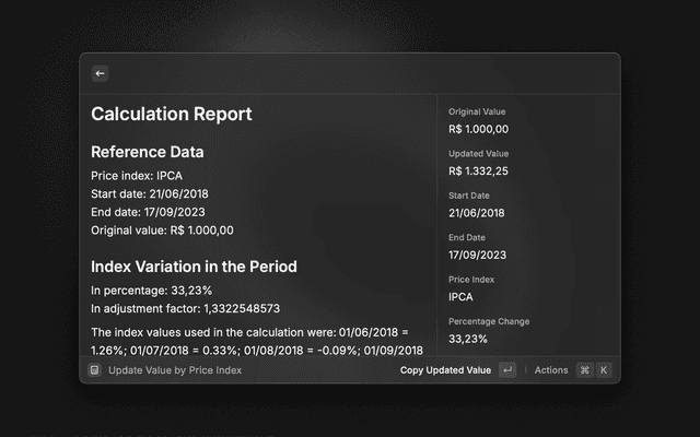 - Update Value by Financial Index: Update a value based on a variety of Brazilian price indices.