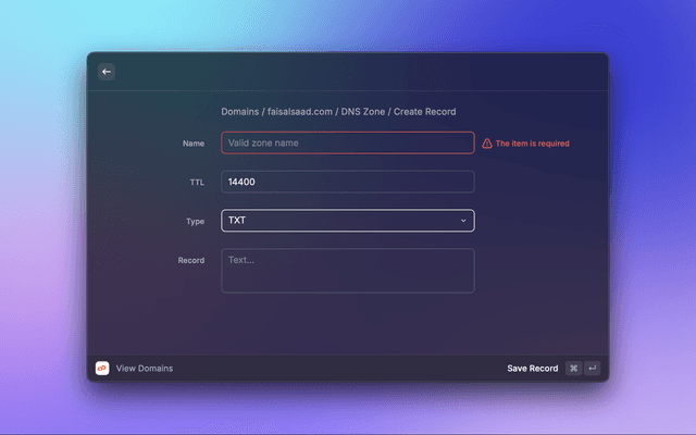 This is a Raycast extension for cPanel User level accounts (Admin and Reseller not supported). With this extension you can View Domains and their DNS Zones, Email Accounts and their Disk Usage.