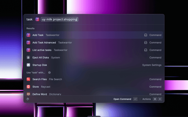 Taskwarrior integration to Raycast.